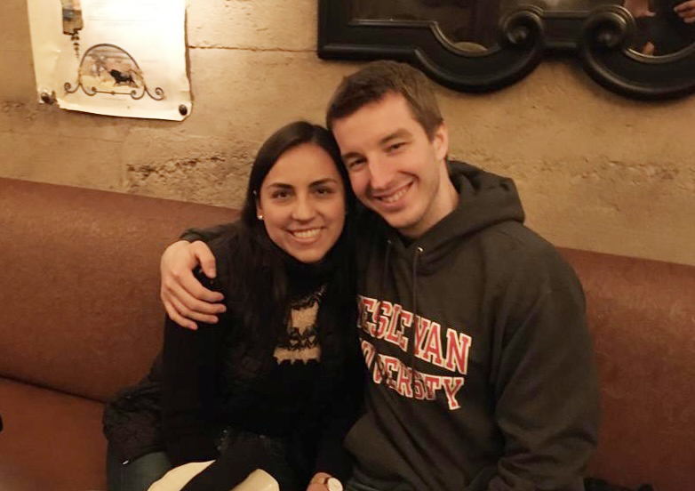 La historia empezó en noviembre del 2019 en Boston mientras Nick hacía su maestría y Priscila hacía un programa de investigación. Se conocieron durante una fiesta colombiana en un bar llamado “La Fábrica”. Escribieron su primera conversación en una nota en el teléfono de Nick porque la música estaba muy alta y no podían escuchar al otro. En su primer aniversario, Nick hizo un libro de memorias de su primer año juntos e incluyó esa conversación al final del libro.