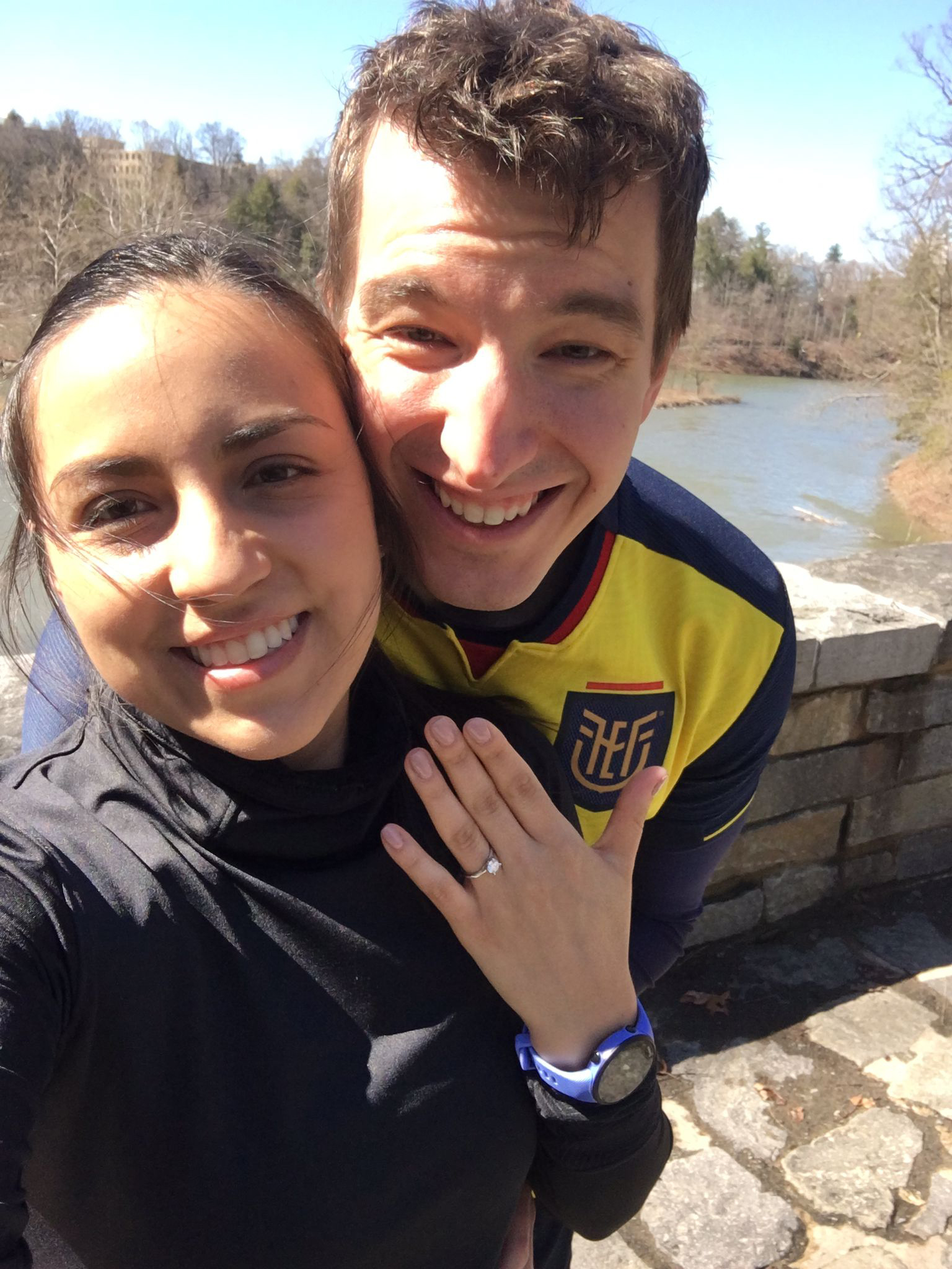 Ithaca, New York fue el lugar donde se comprometieron. Nick le propuso matrimonio a Priscila mientras estaban corriendo porque correr es algo que disfrutan mucho al hacerlo juntos. Ese día, él estaba usando la camiseta de la selección nacional de Ecuador y se arrodilló en un puente de piedra al lado de una cascada.